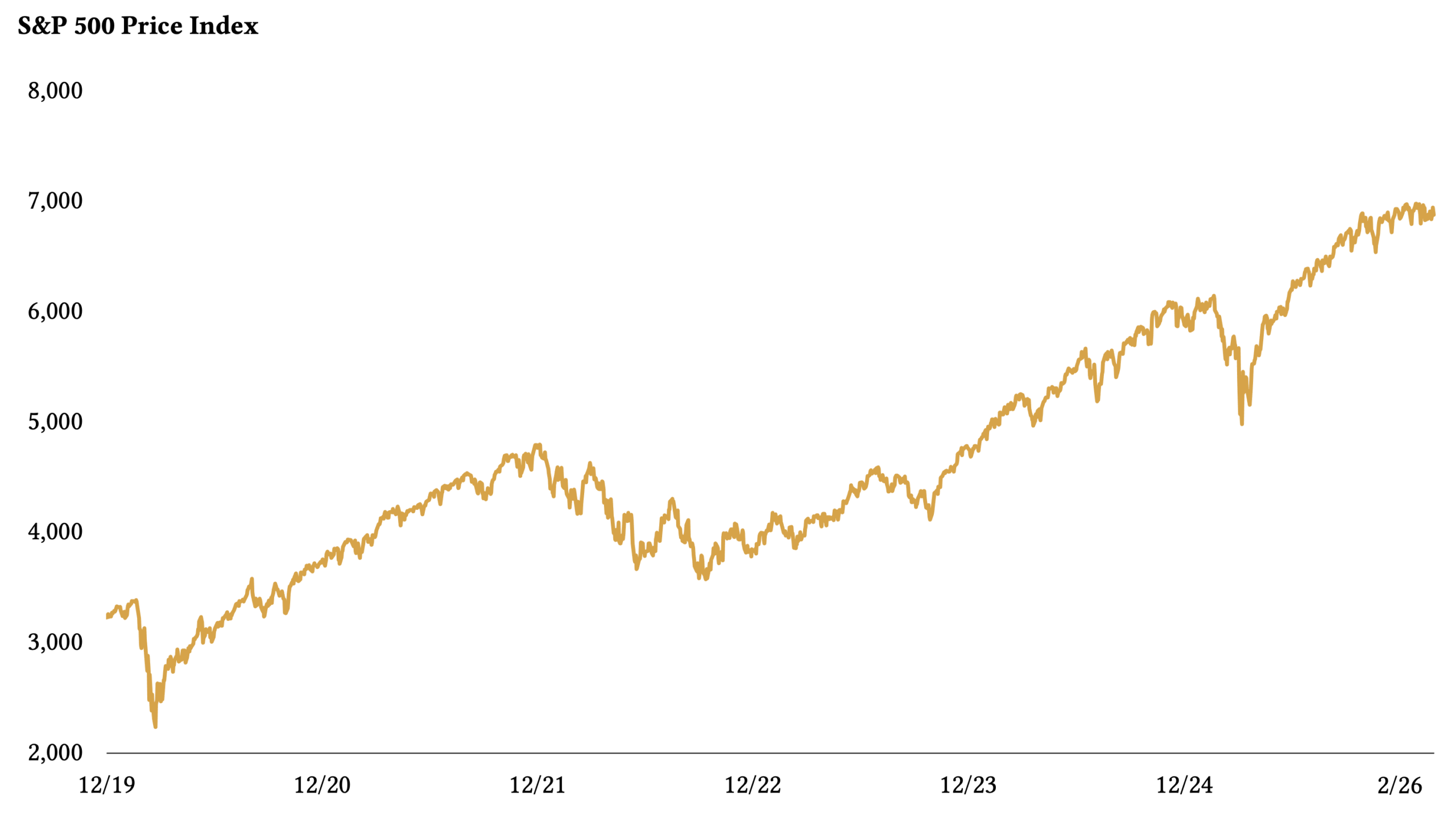 The defining theme for equity markets in February has been the growing focus on AI-driven disruption and the market’s rapid attempt to reprice perceived winners and losers. What initially showed up as sharp weakness in software stocks broadened meaningfully as the month progressed, spilling into insurance brokers, financial services firms, legal and accounting companies, real estate services, trucking and logistics providers, and even drug distribution businesses. In each case, the narrative was similar: concerns that AI could compress margins, automate core functions, or upend long-standing business models. On the surface, major equity indexes have not appeared especially volatile, but beneath that calm has been a steady drumbeat of large, single-day moves at the industry and stock level.