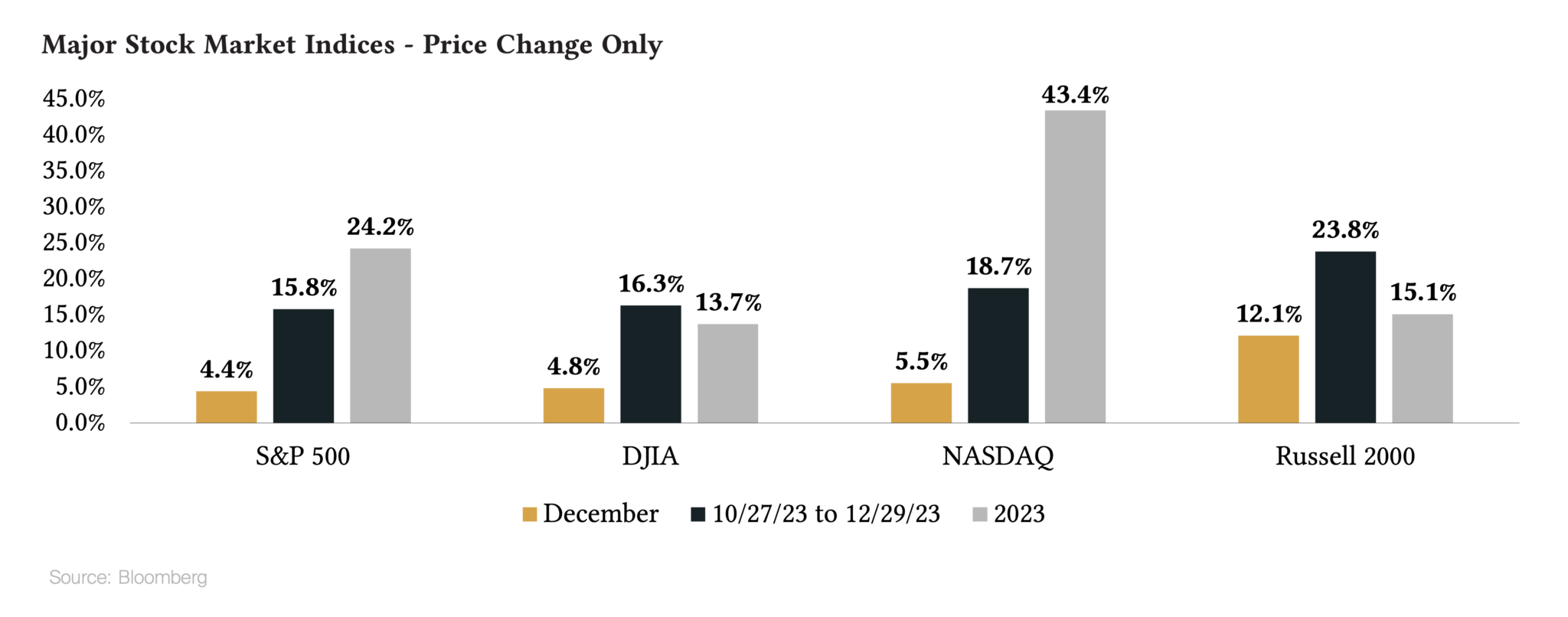 Following the surge in stock prices during November, stock prices took a breather in early December as investors digested the strong gains and looked for additional evidence that the economy is on the path toward taming inflation without a deep economic slowdown, achieving the so-called soft landing. The inflation reports and the December FOMC meeting sent the rally in stocks and fixed income securities back into motion.
